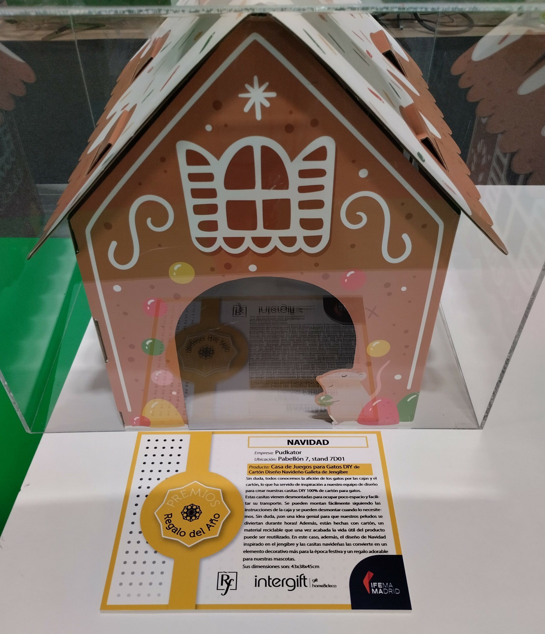 Producto: Casa de Juegos para Gatos DIY de Cartón Diseño Navideño Galleta de Jengibre